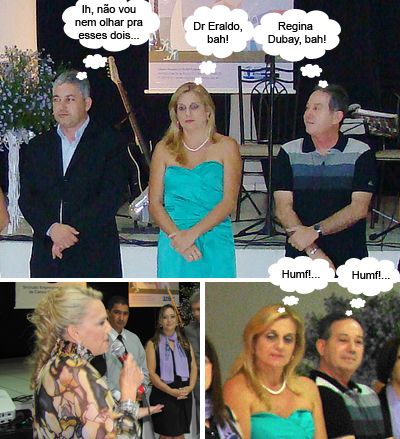 O clic é de sexta-feira, quando a Câmara da Mulher Empreendedora realizou jantar em comemoração ao Dia Internacional da Mulher. A empresária Leila Tonelo da Luz (Paraná Supermercados) foi homenageada com o Prêmio Mulher Destaque 2010. O deputado Douglas Fabrício, a vice-prefeita Regina Dubay e o presidente da Câmara, Eraldo Teodoro, prestigiaram o evento. Ai-aiai-aiai! Mas deixar Regina e Eraldo lado a lado supreendeu os dois, não surpreendeu?...