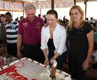 Olha aí o prefeito Nelson Tureck, a deputada-filha Marla Tureck e a vice-prefeita Regina Dubay durante a Festa do Costelão, domingo, no Seminário São José. O trio está diante de um bolo oferecido pelo Paraná Supermercados que foi a leilão durante o evento. Tureck arrematou o bolo por R$ 3 mil, mas pra cada um pagar “milão”. É, foi remate por vaquinha. E a festa do costelão virou “festa do bolão”...