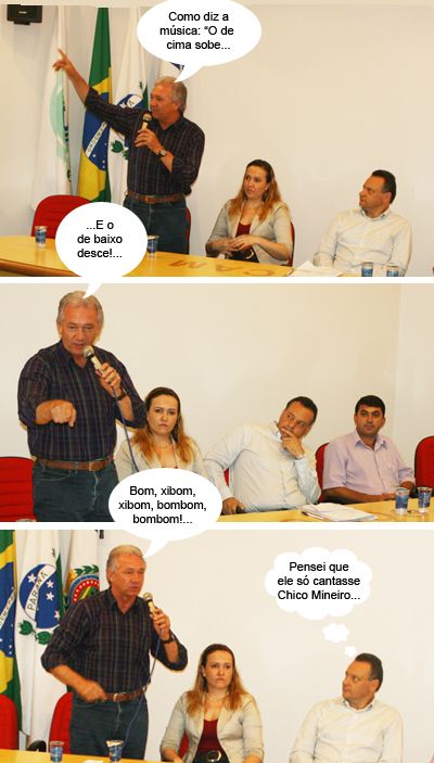 Os deputados Douglas Fabrício e Marla Tureck participaram da reunião da Comcam, sexta-feira, fazendo discursos ainda em clima eleitoral. Douglas falou primeiro e fez críticas ao ex-governador Roberto Requião. Disse que a região perdeu muito no governo dele e que agora tudo vai mudar nas mãos do governador Beto Richa. Marla, por sua vez, disse que houve avanços, mas que não foi feito tudo e por isso que todos estavam ali. O prefeito Nelson Tureck falou em seguida e concordou com a filha-deputada, mas fez uma ressalva. “Eu fui governo, mas a Cohapar não estava com nada mais”. Segundo ele, só o governo federal tem feito casas. Hummmmm...