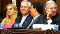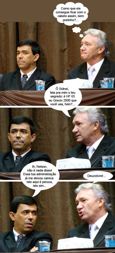O clic é de quarta-feira, no primeiro dos dois dias de formaturas da Fecilcam. Na mesa das autoridades, o prefeito Nelson Tureck teve que ficar lado a lado com o vereador ultra-oposicionista Sidnei Jardim. Política, política, eventos à parte. Os dois trocaram altos papos durante o evento. Ah, vá ver foi sobre o Mengão de Jardim, agora com Ronaldinho Gaúcho, e o Fogão de Tureck, com Loco Abreu e suas cavadinhas...
