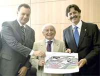 O prefeito Fábio D’Alécio foi a Brasília durante a semana e, entre outros contatos, esteve com o novo ministro do Turismo, Pedro Novais. Tudo levado pelo deputado Hermes Frangão. O vereador Haroldo Fernandes Duarte acompanhou a visita. D’Alécio mostrou ao ministro o projeto de revitalização do centro de eventos da Sociedade Rural de Ubiratã, onde é realizada a Expobira. Olha lá, hein seu ministro?...