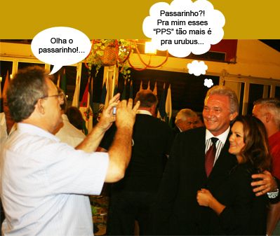 ENQUANTO ISSO, NA REUNIÃO DA COMCAM... O clic é de sexta-feira, na reunião da Comcam, que aconteceu no Recanto do Criador. Na hora da sessão tietagem, coube ao presidente municipal do PPS e agora chefe regional da Seab, Edson Battilani, fazer o clic do prefeito Nelson Tureck. Sabe como é, o eleitorado pede e não dá pra dizer não. E viva o clic!...