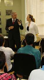 Nelson Tureck (PMDB), prefeito de Campo Mourão, cutucando a oposição e elogiando o governador Beto Richa (PSDB) por ter nomeado a esposa, Fernanda, com secretária de Estado; durante reunião com lideranças comunitárias, ontem à tarde.