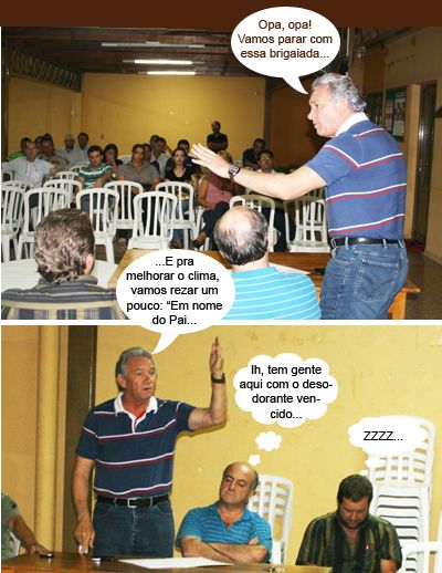 ENQUANTO ISSO, NA REUNIÃO DA UPRESCAM... Olha aí os clics do encontro de sexta-feira, que reuniu o prefeito Nelson Tureck, secretários municipais e presidentes de associações de moradores. Na foto, além do prefeito, estão o presidente da Uprescam, Lineu Quadros, e o diretor da Secretaria de Obras, Vanderlei Veiga Ribeiro. Foi nessa reunião aí que o secretário Celso Hruschka (Agricultura e Meio Ambiente) e o presidente do Parigot de Souza, Roque de Freitas, quase se pegaram nos tapas. Ah, eles que já foram vereadores juntos que se entendam...