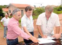 ENQUANTO ISSO, NA OBRA DE PAVIMENTAÇÃO... O clic é de quinta-feira, no conjunto José Richa (jardim Santa Cruz), onde o prefeito Nelson Tureck e a vice Regina Dubay foram conferir as obras de pavimentação. O investimento é de R$ 635 mil, dinheiro que veio do governo federal via emendinha do deputado Fernando Giacobo. O conjunto, com 170 casas, foi inaugurado em 2009, como parte do desfavelamento da comunidade São Francisco.