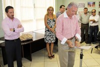 Fernando Guimarães, presidente do Tribunal de Contas do Estado, reagindo com bom humor quando ninguém se manifestou quando ele perguntou se a preferência era para que fossem julgadas as contas mais novas ou as mais antigas; em Campo Mourão, ontem à noite.