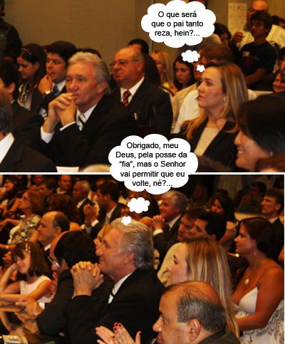 Os clics são desta terça-feira, na Assembleia Legislativa, durante a solenidade de posse dos deputados estaduais. A mourãoense Marla Tureck ficou o tempo todo ao lado do pai, o prefeito e ex-deputado Nelson Tureck. Aliás, ele ficou quase sempre assim, de mãos juntas, como que se tivesse rezando. Vá saber...