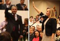 Agora tá valendo de fato e de direito. Douglas Fabrício e Marla Tureck foram empossados ontem à tarde e a região conta com dois legítimos representantes na Assembleia Legislativa. Uma caravana de lideranças regionais acompanhou a posse. Entre eles, os prefeitos Nelson Tureck e Fábio D’Alécio (Ubiratã) e os ex-prefeitos Tauillo Tezelli e Renato Toaldo (Araruna). Tirando Tureck, o resto é tudo PPS. Hummmm...