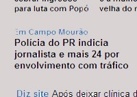 O indiciamento das 26 pessoas voltou a colocar Campo Mourão na mídia nacional. O assuntou rendeu chamada na página inicial do UOL. Segundo o delegado José Aparecido Jacovós, o suposto líder da quadrilha, Gilmar Tenório Cavalcanti, teria confessado que é traficante e que tinha relacionamento com a jornalista. Ele contou que lucrava cerca R$ 800 a cinco dias com o tráfico. Isso antes do aumento do mínimo, hein?...