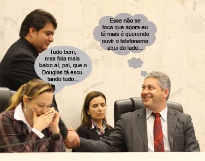 O clic é da sessão da Assembleia Legislativa de quinta-feira. Os deputados de Campo Mourão, Marla Tureck e Douglas Fabrício, ficaram lado a lado na mesa diretora. Aí, até na hora de atender um telefonemazinho básico, Marla teve que dar uma disfarçada. E bem nessa hora aparece gente pra cumprimentar o Douglas. Aff!...