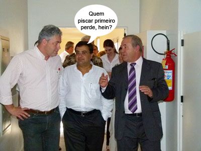 O clic é da visita do secretário de Estado Michelle Caputo (Saúde) à Santa Casa de Campo Mourão, sexta-feira. Ele aparece no meio do deputado Douglas Fabrício e do presidente da instituição, Elmo Linhares. O secretário disse que o novo governo dará continuidade às obras da nova maternidade e do pronto socorro da Santa Casa, mas deu uma cutucadinha no governo anterior, que teria liberado poucas parcelas. Ah, e iria perder a deixa?...
