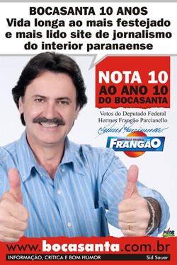 10 anos - Boca Santa pegou três dias descanso pra comemorar os 10 anos, mas os internautas não deram folga, não. Entupiram a caixa-postal da Bronca Virtual. A gente vai publicando na medida do possível, mas vão uns três dias pra por a casa em ordem. Portanto, pessoal, paciência, paciência e paciência...