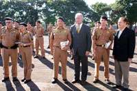 Quatro prefeitos da região participaram ontem, no 11º BPM, da solenidade de formatura de 21 novos policiais militares – Nelson Tureck (Campo Mourão), Mino Bonato (Araruna), Aguinaldo Chichetti (Roncador) e Ricardo Radomski (Mamborê). O presidente da Coamo, Aroldo Gallassini, foi o padrinho da turma. Os 21 soldados serão divididos pela região, que incluiu Cianorte e outras cidades por lá. Xiiiiiiiii...