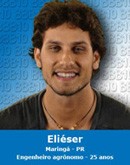 A Globo divulgou ontem os nomes dos 15 candidatos para o Big Brother 10, que começa semana que vem. E não é que entre eles tem um goioerense? O agrônomo e modelo Elieser Ambrósio, 25, já está confinado no Rio. Foi uma equipe da Globo que o buscou em Goioerê. Os pais dele moram perto da prefeitura. O site da Globo, porém, diz que Elieser é de Maringá. Ah, até isso agora Maringá quer “roubar” da gente?...