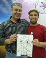 O deputado Douglas Fabrício participou, semana passada, do “Programa A”, da TV Carajás. Enquanto foi entrevistado pelo apresentador Alan Palhano, o deputado foi desenhado pelo cartunista mourãoense Tiago Silva, que o fez vestido de Papai Noel. Ao final do programa, o desenho foi apresentado e entregue a Douglas. O deputado disse que gostou dos traços e parabenizou o cartunista. Mas ai se o desenho fosse do Requião...