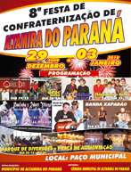 Começa amanhã a 8ª Festa da Confraternização em Altamira do Paraná. A promoção é da prefeitura e vai até o dia 3. Haverá shows diários, além de parque de diversões e praça de alimentos. Na abertura tem a banda Opus Dei. Depois vêm a banda U-Toc Jovem e Léo & Cristiano (30), Thiago José e Banda (31), Paulinho e Robert Velozo (1), Willian Vale e Cristiano (2) e banda Xapadão (3). Viu só, isso é que é virar o ano festando...