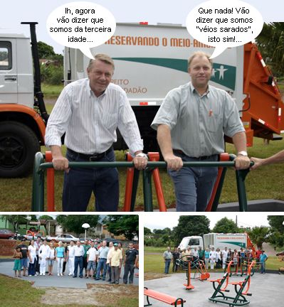 Os clics são de Barbosa Ferraz, onde em plena véspera de Natal o prefeito Arquimedes Gasparotto foi inaugurar a academia da terceira idade em frente ao ginásio de esportes. Um dia antes, ele inaugurou a ATI do distrito de Bourbônia. Além do prefeito, participaram vereadores, secretários e populares. É claro que Gasparotto teve que fazer uma exerciciozinho para o clic oficial. Ô gente, ossos do ofício...