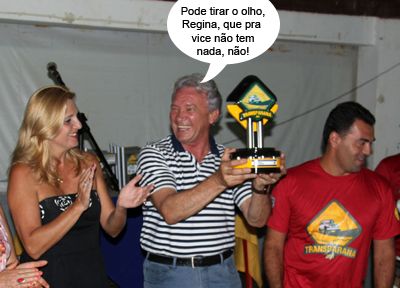 O clic é de anteontem à noite, quando o prefeito Nelson Tureck foi homenageado pela organização do Raid Transpararaná, que passou pela cidade com seus mais de 60 jipes rumo ao litoral do Estado. A vice-prefeita Regina Dubay também participou. A homenagem não foi à toa, não. A prefeitura apóia o evento através da Fecam e da Secretaria de Desenvolvimento Econômico. E viva a jipaiada!...