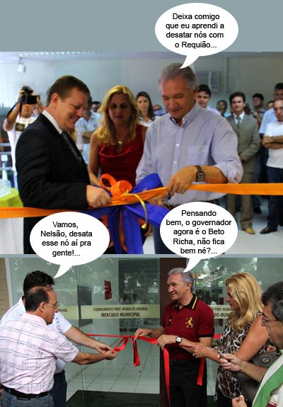 Quem se dizia “desatador de nós” era o ex-governador Roberto Requião, mas quem começou o ano “desatando” foi o prefeito Nelson Tureck. Em dois dias, ele participou do desenlace da fita inaugural do novo posto do banco Itaú e do novo Mercadão Municipal, reinaugurado no sábado após o incêndio de 2009. A vice-prefeita Regina Dubay está nos dois clics. O secretário Alcione Jacob (Desenvolvimento Econômico) e o padre Ademar Lins aparecem no segundo. E viva a laçaiada!...