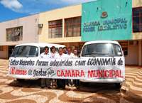 O presidente da Câmara de Engenheiro Beltrão, Daniel Paro, e outros seis vereadores foram à prefeitura entregar as duas Kombis compradas com os R$ 90 mil que o legislativo economizou ano passado. Como manda a lei, a compra foi feita pela prefeitura, mas os vereadores fizeram a entrega. Paro disse que para este semestre pretende economizar R$ 130 mil para compra de uma UTI móvel. E as diarizinhas, ó!...