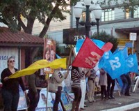 Faltando 10 dias para as eleições, a campanha pelas ruas acirrou de vez. Ontem no fim da tarde, cabos eleitorais de Regina Dubay e de Tauillo Tezelli se encontraram no calçadão. Tirando a barulheira dos carros de som, aí incluindo um de José Turozi, e o agito das bandeiras, foi tudo tranqüilo. A campanha está esquentando nas ruas, mas ainda não chegou nem perto do que se viu em 2004 e 2008. Por enquanto!...
