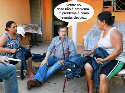 ENQUANTO ISSO, NA CAMPANHA ELEITORAL... Olha aí mais um clic das visitas que os candidatos a prefeito de Campo Mourão fazem pelos bairros da cidade. Como isso também cansa, tem hora que é preciso sentar, nem que seja no chão, como fez Tauillo Tezelli nessa casa aí. Pensa que é fácil, é?...