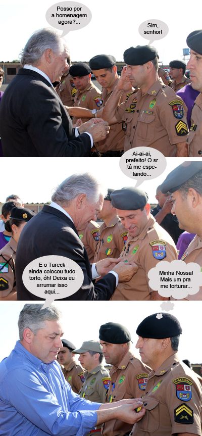 ENQUANTO ISSO, NA SOLENIDADE NO 11º BPM... Os cliques são de sexta-feira, quando teve solenidade no 11º BPM para comemorar os 158 anos da Polícia Militar do Paraná. O prefeito Nelson Tuerck e o deputado estadual Douglas Fabrício estiveram por lá e ajudaram a entregar as homenagens feitas a um grupo de policiais. E viva a PMPR! Urra! Urra! Urra!...