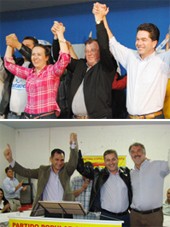 Tem mudança também em Corumbataí do Sul. A “chapa pura” lançada pelo PPS desistiu de disputar a prefeitura e anunciou apoio à professora Nair de Souza (PSC). A candidata a vice dela é Neuza Cafissi, mulher do ex-prefeito Passarinho. A situação vai com Carlos Caxão (PDT) e Xandão Donato (PMDB). E existe uma terceira candidatura, com os petistas PC Lima e Pedrinho Inglês. E a campanha nem começou, hein?...