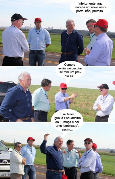 Os cliques são da semana passada, quando o prefeito Nelson Tureck aproveitou a presença na cidade de inspetores da Anac para mostrar áreas do município onde a prefeitura pode construir um novo aeroporto. Os técnicos falaram sobre as exigências da Anac, dizendo que Campo Mourão possui áreas próximas a rodovias favoráveis à execução de um “excelente projeto”. Falta “só” o dinheiro...