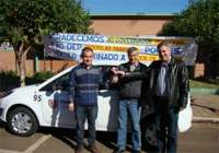 Os moradores de Araruna que necessitam de deslocamento para tratamento de saúde podem contar com um veículo 0 km. O carro foi adquirido pelo Estado atendendo emenda do deputado Douglas Fabrício. Olha ele aí, fazendo a entrega ao prefeito Mino Bonato e ao vice-prefeito Renato Toaldo. Segundo Mino, o Fiesta será usado exclusivamente pra quem precisa de tratamento fora da cidade. Ah, assim dá gosto ficar doente...