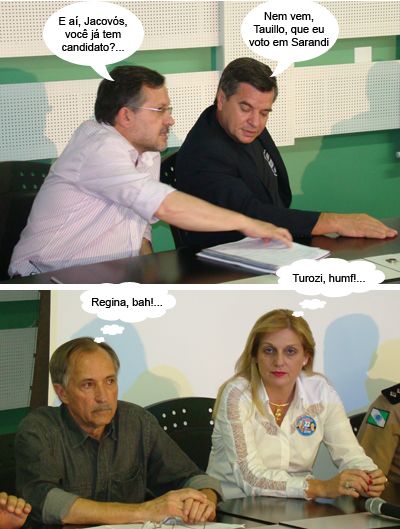 Os cliques são da reunião do Conselho Comunitáiro de Segurança, ontem à noite, que teve a presença dos três candidatos a prefeito de Campo Mourão. Tauillo Tezelli (PPS) ficou ao lado do delegado-chefe da 16ª SDP, José Aparecido Jacovós, enquanto José Turozi (PV) e Regina Dubay (PR) se sentaram lado a lado.