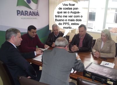 O clic é do início da semana, quando uma audiência com o secretário de Estado Michele Caputo (Saúde) contou com a presença dos deputados Douglas Fabrício e Rubens Bueno e dos presidentes Fábio D’Alécio (Comcam), Dina Cardoso (Cis-Comcam) e Elmo Linhares (Santa Casa). Linhares, aliás, está de costas, mas a maleta preta ao lado não deixa dúvidas: é ele!...