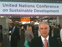 Quem disse que é somente chefe de Nação que participa da Rio + 20? O deputado federal Rubens Bueno também esteve por lá. Ele participou quarta-feira de um debate sobre mudanças climáticas e sustentabilidade. Segundo Bueno, além do compromisso global com o meio ambiente, a Rio + 20 serve de treinamento de capacitação de gestores públicos de pequenas e médias cidades. E lá dá pra falar mal de governos do mundo inteiro...