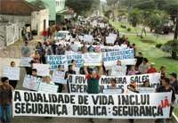 Enquanto os políticos da região cobravam o governo em Curitiba, os moradores de Moreira Sales pararam a cidade num protesto contra a falta de segurança. Uma passeata saiu do centro e foi até a entrada da cidade, fechando rodovia e tudo. O pedido da Comcam é que pelo menos os 32 moradores da região que estão fazendo o curso de formação de soldados fiquem na região. É, o que é nosso, é nosso, ninguém tasca...