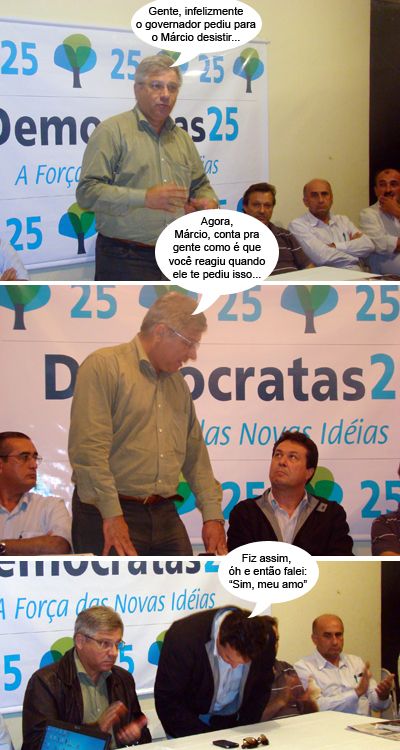 Os cliques são da convenção do DEM, na sexta-feira, quando o até então pré-candidato a prefeito Marcio Nunes anunciou publicamente que estava desistindo da disputa a pedido do governador Beto Richa. Também “fala” nas fotos o presidente do DEM, Nery Thomé. O governador, como se sabe, apoiará Tauillo Tezelli em Campo Mourão.