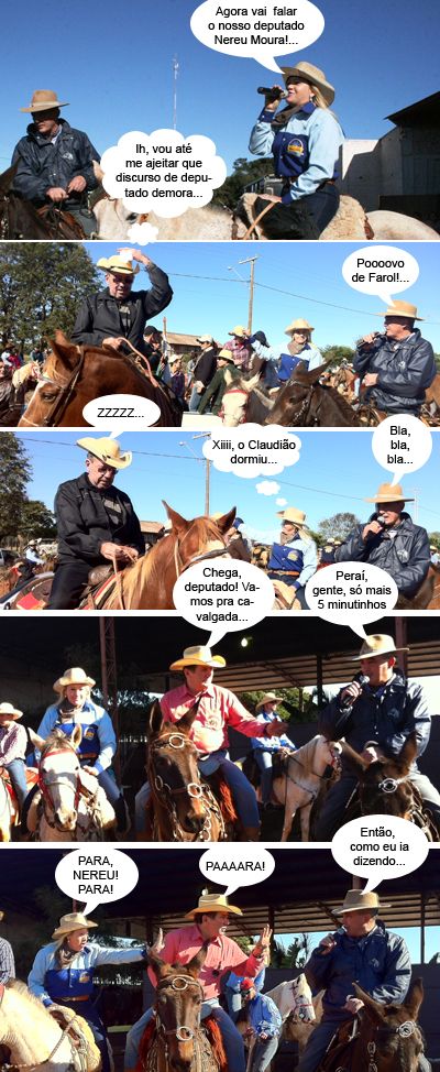 Os cliques são da cavalgada que Farol realizou no domingo como parte das comemorações pelos 19 anos do município. Estão na fotos, a prefeita anfitriã Dina Cardoso, o deputado Nereu Moura, o prefeito Cláudio Gotardo (Boa Esperança) e o presidente da Associação Regional dos Cavaleiros, Jorge de Oliveira. O vice-prefeito Izaias Lima e o presidente da Câmara, Irineu Garcia, também participaram.