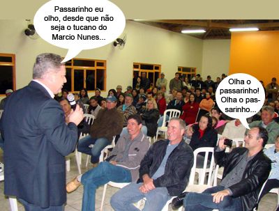 O prefeito Cláudio Gotardo (Boa Esperança) diz que o descrédito do povo na política está refletindo no número de candidatos. Ele lembra que na primeira eleição que disputou, sua chapa tinha mais de 50 candidatos a vereador. Na segunda, esse número cai pra casa dos 30. Na terceira foi para a casa dos 20 e, agora, na quarta, ele acha que não terá mais que 15 pleiteando uma cadeira da Câmara. Ih, assim vão ficando sempre os mesmos, hein?...