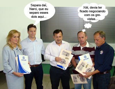 ENQUANTO ISSO, NA ASSOCIAÇÃO COMERCIAL... O clic é da reunião da Acicam, ontem à noite, que teve a presença dos três candidatos a prefeito. Na hora da entrega das reivindicações, o presidente Marcelo Chirolli ficou entre os prefeitáveis Regina Dubay e Tauillo Tezelli, enquanto o diretor da UTFPR, Narci Nogueira, se posicionou no meio de Tauillo e José Turozi. Ah, se deixar um prefeitável do lado do outro, haja alfinete pra tantas alfinetadas...