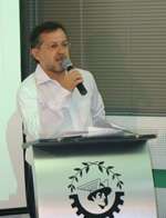 Wilson Isolani, secretário da Acicam, alertando para que não houve manifestações mais acaloradas durante o pronunciamento dos candidatos a prefeito na reunião da entidade; ontem à noite.