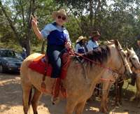 Sexta-feira teve Cavalgada da Independência em Iretama. E olha só quem esteve por lá. Ela mesma, a prefeita Dina Cardoso (Farol), que acompanhou a comitiva de cavaleiros farolenses, liderada por Zé Dativa. Dina levou seu cavalo e apetrechos e percorreu todo o percurso do evento. Tudo isso na sexta-feira pela manhã. Após o almoço ela voltou pra casa, afinal, é época de campanha eleitoral. E bobeia pra ver uma coisa!...