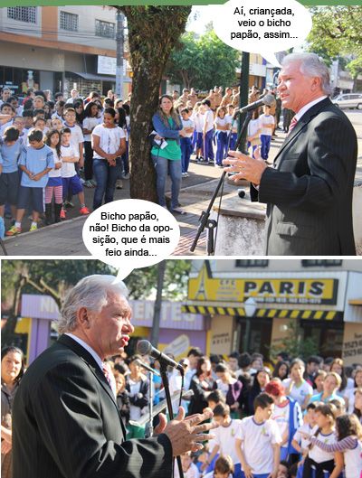 Os prefeitáveis Regina Dubay e Tauillo Tezelli falam com orgulho que têm o apoio da presidente Dilma Rousseff e do governador Beto Richa, respectivamente. Agora, cá pra nós: os dois perderam a eleição em Campo Mourão. Se dependesse do mourãoense, o presidente seria José Serra e o governador seria Osmar Dias. Aliás, se dependesse de Campo Mourão, Lula nunca teria sido presidente. Ô povo oposicionista...