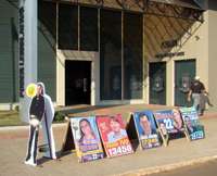 À medida que a eleição vai se aproximando, vai aumentando o número de painéis com propagandas de candidatos pelas esquinas da cidade. Onde circula mais gente, tem mais painéis. Em frente à Caixa e à Fiorella, por exemplo, o metro quadrado é disputadíssimo. Tem também muitos painéis em frente à nova Câmara. Ontem havia 10 por lá. Só perde pro calçadão. Ah, na Câmara já deve ser fila pra pegar uma cadeirinha...