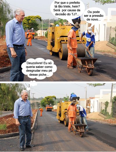 ENQUANTO ISSO, NO ASFALTO DO ARAUCÁRIA... Os cliques são da semana passada, portanto, antes da crise que hipertensão que o prefeito Nelson Tureck teve na sexta-feira pela manhã, quando ele foi conferir as obras de pavimentação de ruas do jardim Araucária. Agora cá pra nós: que cara de desânimo era essa, hein?...
