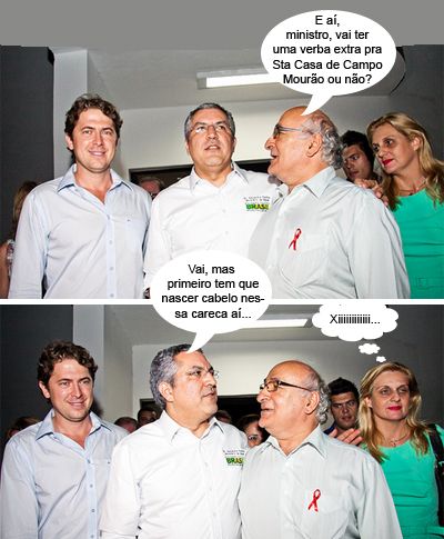Os cliques são da semana passada, em Cruzeiro do Oeste, onde ministro Alexandre Padilha (Saúde) foi inaugurar o Hospital Municipal. A prefeita eleita Regina Dubay aproveitou pra ir até lá e conversar com o ministro. O deputado federal Zeca Dirceu, que é da terra, também está na foto, além de outro homem que a gente não tem a menor ideia de quem seja.