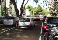 Tem mudança no trânsito na av. José Custódio de Oliveira, entre as ruas São Paulo e Harrison José Borges. Nesse trecho aí voltou a ser permitido o estacionamento junto ao canteiro central. O objetivo é aumentar o número de vagas pra estacionar. E ontem elas se encheram rapidamente. Só que a pista ficou bem estreitinha. Uma verdadeira “raspadinha”, já que os carros passam raspando nos estacionados...