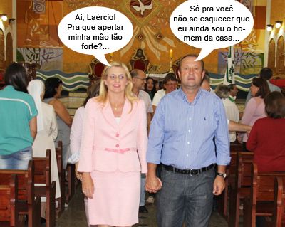 ENQUANTO ISSO, NA MISSA DOS ELEITOS... O clic é do fim de semana, quando a prefeita eleita Regina Dubay participou de missa em ação de graças celebrada pelo padre Jurandir Coronado Aguilar. Ela estava com o futuro “primeiro-damo” Laércio Dubay. Também participaram da celebração os vereadores eleitos Jorge Pereira, Edson Battilani, Pedrinho Nespolo e Elvira Lima, além do ex-prefeito Renato Fernandes Silva.