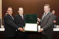 Ariranha do Ivaí. Isso é nome de cidade. E é de lá que vem o 33º título de cidadania honorária conquistado pelo presidente da Coamo, Aroldo Gallassini. A sessão solene foi realizada na quarta-feira. Olha aí Gallassini com o prefeito Carlos Bandiera de Matos e o presidente da Câmara, Milton Xavier. Na semana passada, a Comcam também aprovou um título para o presidente. E haja parede pra tanto diploma...