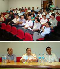 O plenário da Acamdoze/Comcam ficou praticamente lotado, ontem à noite, na assembleia da entidade que reuniu vereadores eleitos e reeleitos. Como o presidente João Carlos Mendonça não apareceu, a mesa foi formada por dois presidentes de câmaras – Édio Pietroski (Roncador) e Silvio Sanches (Corumbataí do Sul) -, além do ex-presidente da entidade, Xandão Donato, que agora tá eleito vice-prefeito de Corumbataí. Hummmm...