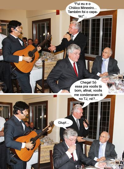 ENQUANTO ISSO, NO RECANTO DO CRIADOR... Os cliques são do Recanto do Criador, onde aconteceu o jantar oferecidos aos desembargadores do Tribunal de Justiça do Paraná após a solenidade de elevação da comarca de Campo Mourão. O prefeito Nelson Tureck não perdeu a chance de soltar a voz. Sem “Chico Mineiro” desta vez. Ele cantou “Coração Sertanejo”. Hummmmmm...
