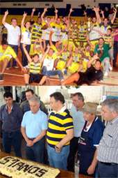 Campo Mourão faturou sábado à noite o título do Sul-Brasileiro de Basquete-m, com uma vitória história sobre Joinville/SC no JK – 83 a 78. No dia seguinte teve a Festa do Leitão à Campestre em Ubiratã. E o que uma coisa tem a ver com a outra? Não teria nada se não fosse um detalhe: olha a camisa do prefeito Fábio D’Alécio! Igualzinha ao uniforme do Campo Mourão Basquete. Que Los Angeles Lakers, que nada...